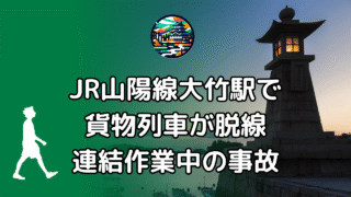 メモ JR山陽線大竹駅で貨物列車が脱線、連結作業中の事故 貨車の連結作業中に発生した事故 10月9日午前11時半ごろ、広島県大竹市新町1丁目にあるJR山陽線の大竹駅構内で、貨物列車が脱線する事故が発生しました。脱線したのは広島貨物ターミナル駅発大竹駅行きの14両編成の貨物列車でした。 中国運輸局な... 2025.10.10 メモ