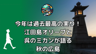 メモ 今年は過去最高の実り!江田島オリーブと呉のミカンが語る秋の広島 過去最高の豊作!江田島オリーブの収穫 江田島市では、島を挙げて栽培しているオリーブの収穫時期を迎え、10月3日にはオリーブオイル作りが始まっています。オリーブ栽培加工・レストラン運営を行う山本倶楽部では、18年前に耕作放棄地の活用を目指し江... 2025.10.09 メモ