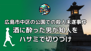 広島市中区の公園での殺人未遂事件:酒に酔った男が知人をハサミで切りつけ
