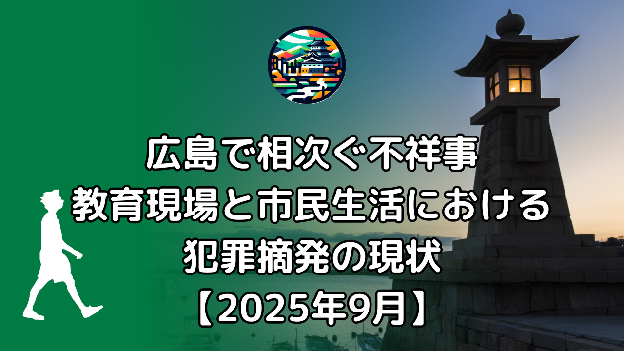 広島市・熊野町で未成年者を狙った不同意わいせつ、公園での加害、さらに列車内での公然わいせつと、短期間に複数の事件が発覚しています。これは「地域の安全」に対する不安を高め、防犯体制の強化や住民の防犯意識向上が求められる状況です。 - 再犯・余罪の可能性