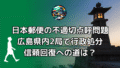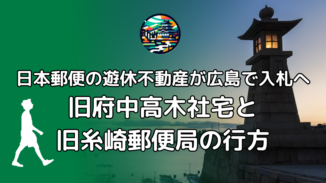 日本郵便株式会社は、遊休不動産の売却を目的とした一般競争入札を公告しました。入札件名は「旧大津社宅ほか3件の売却」で、この中に広島県内の2つの物件が含まれています。