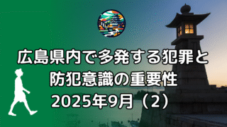 メモ 広島県内で多発する犯罪と防犯意識の重要性2025年9月(1) 深夜の尾道で発生したバイクによるひったくり 2025年9月19日深夜、尾道市新浜2丁目の路上でひったくり事件が発生しました。午後11時15分ごろ、買い物のために歩いていた37歳の女性が、小型バイクに乗った2人組に追い抜きざまに手提げカバンを... 2025.09.22 メモ