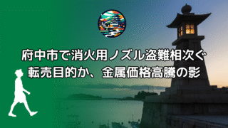 メモ 府中市で消火用ノズル盗難相次ぐ:転売目的か、金属価格高騰の影 緊急時への備えが脅かされる事態 広島県府中市で、消火用ホースの先端に取り付ける真ちゅう製の「筒先」または「ノズル」が盗まれる被害が相次いでおり、2025年9月10日、府中市土生町の新聞配達員(66)が窃盗の疑いで逮捕されました。 逮捕容疑は... 2025.09.15 メモ