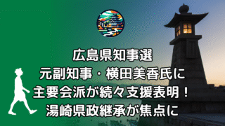 メモ 広島県知事選、元副知事・横田美香氏に主要会派が続々支援表明!湯崎県政継承が焦点に 横田氏、主要3会派へ支援要請 湯崎県政の継承を掲げる 11月9日投開票予定の広島県知事選挙に向けて、元副知事の新人で無所属の横田美香氏(54歳)が立候補を表明しました。横田氏は、現職の湯崎英彦知事が16年にわたり築き上げてきた県政を継承して... 2025.09.15 メモ