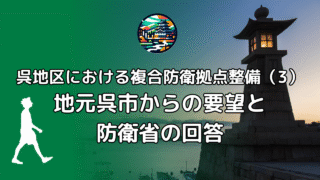 メモ 呉地区における複合防衛拠点整備(3)地元呉市からの要望と防衛省の回答 産業機能と地域経済への貢献 呉市長と呉市議会議長は2024年7月3日、防衛大臣宛てに7項目の要望書を提出しました。 産業機能については、呉市への経済波及効果や雇用創出効果が高い産業、および地元中小企業に好影響を及ぼす裾野の広い産業の誘致・整... 2025.09.13 メモ