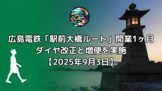 メモ 広島電鉄「駅前大橋ルート」開業1ヶ月、ダイヤ改正と増便を実施【2025年9月3日】 広島駅へのアクセス改善と利便性向上 2025年7月に開業した広島電鉄の「駅前大橋ルート」は、開業から1ヶ月が経過し、「利便性が高まった」という声が聞かれています。これに合わせて、広島電鉄は2025年9月3日、ダイヤ改正と増便を実施しました。... 2025.09.04 メモ