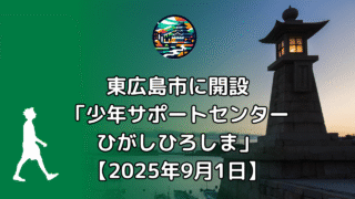 メモ 東広島市に「少年サポートセンターひがしひろしま」が開設【2025年9月1日】 少年の非行や被害に関する相談に対応 広島県東広島市に、「少年サポートセンターひがしひろしま」が2025年9月に開所しました。この施設は、児童虐待や配偶者からの暴力などの問題にも対応するため、東広島市と竹原市、大崎上島町を所管する「西部こども... 2025.09.04 メモ