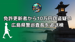 メモ 免許更新者から10万円窃盗疑い 広島県警巡査長を追送検 警察官が免許更新の来庁者から窃盗を繰り返したか 別の高齢男性からの現金約10万円窃盗容疑 広島県警竹原警察署大崎上島分庁舎に勤務していた31歳の巡査長(31)が、別の島民の男性(75)からも現金を盗んだ疑いで追送検されたことが明らかになりま... 2025.09.28 メモ