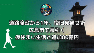 メモ 道路陥没から1年、復旧見通せず:広島市で長引く仮住まい生活と追加80億円 事故発生から1年:今なお続く住民の仮住まい 事故の概要と復旧の進捗 広島市西区福島町の市道陥没事故は9月26日で発生から1年を迎えました。事故は、地下約30メートルで雨水管を整備する市の工事中に発生し、陥没は東西約40メートル、南北約30メ... 2025.09.28 メモ